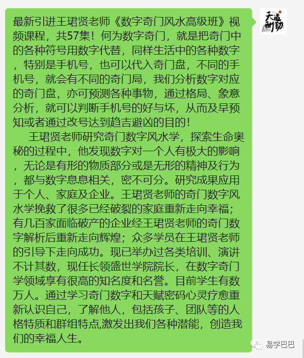 易学巴巴国学学习网-专业易学课程下载网站 » 王珺贤《数字奇门风水高级班》57集