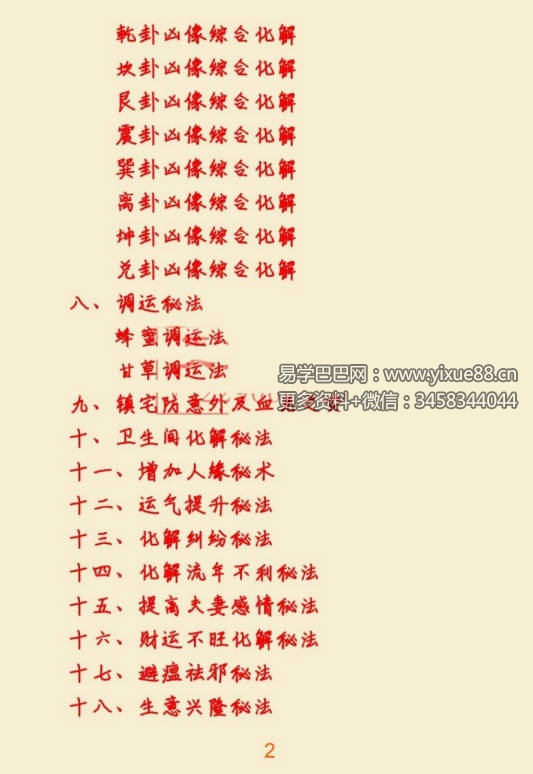 秘法:中药化解风水秘法风水用药化解密法实战2024年升级书籍120页秘籍!!、化解流年不利秘法、提高夫妻感情秘法、财运不旺化解秘法、生意兴隆秘法、求官求富秘法、调理生意财运秘法、催文昌秘法、 楼房招财阵法、阳宅偕运秘法、旺丁求子秘法、化解小人秘法、开运秘法、民间三百年的风水不传之秘!!