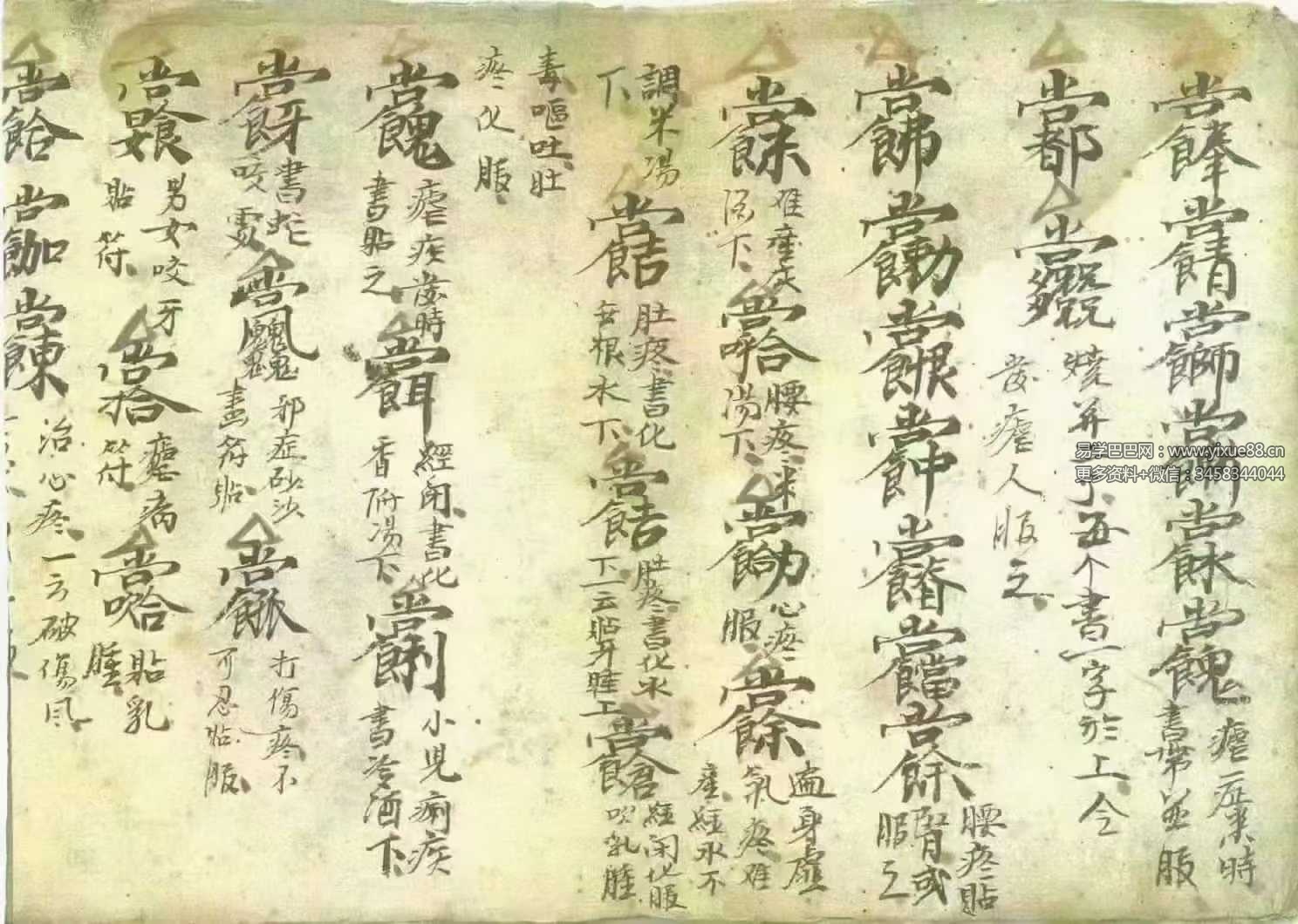 灵枣咒、水咒、白芨咒、诸般之症符画咒、诸邪般症画符咒、符式五八十道、诸符病咒、治一切疾眼方、疮毒符、天丹干符十道、疗疟疾符桃咒、消化般诸梗喉符咒、鱼咽刺喉咒、除邪符、失符魂咒、镇宅符、水邪喷病咒、角印法、真重丧法、治病符道、外症八十道、天师雷五咒、治病百符、解冤咒、催生符、净龙宅蜀经、…消化肿毒符灵神咒、妇抽人症方、收肿毒咒、吹毒肿咒、治疮咒、发神背方、水疮喷咒、肿毒痄符腮咒、收毒肿疙疸法、催生八神马符咒、九玄天女催生咒、神疟效疾咒、疮神咒、消毒肿符咒、治名无肿毒、洗眼昏花法、治符疾咒、宋桂咒、送鬼病咒、伏虎咒、吹成乳疮咒…..