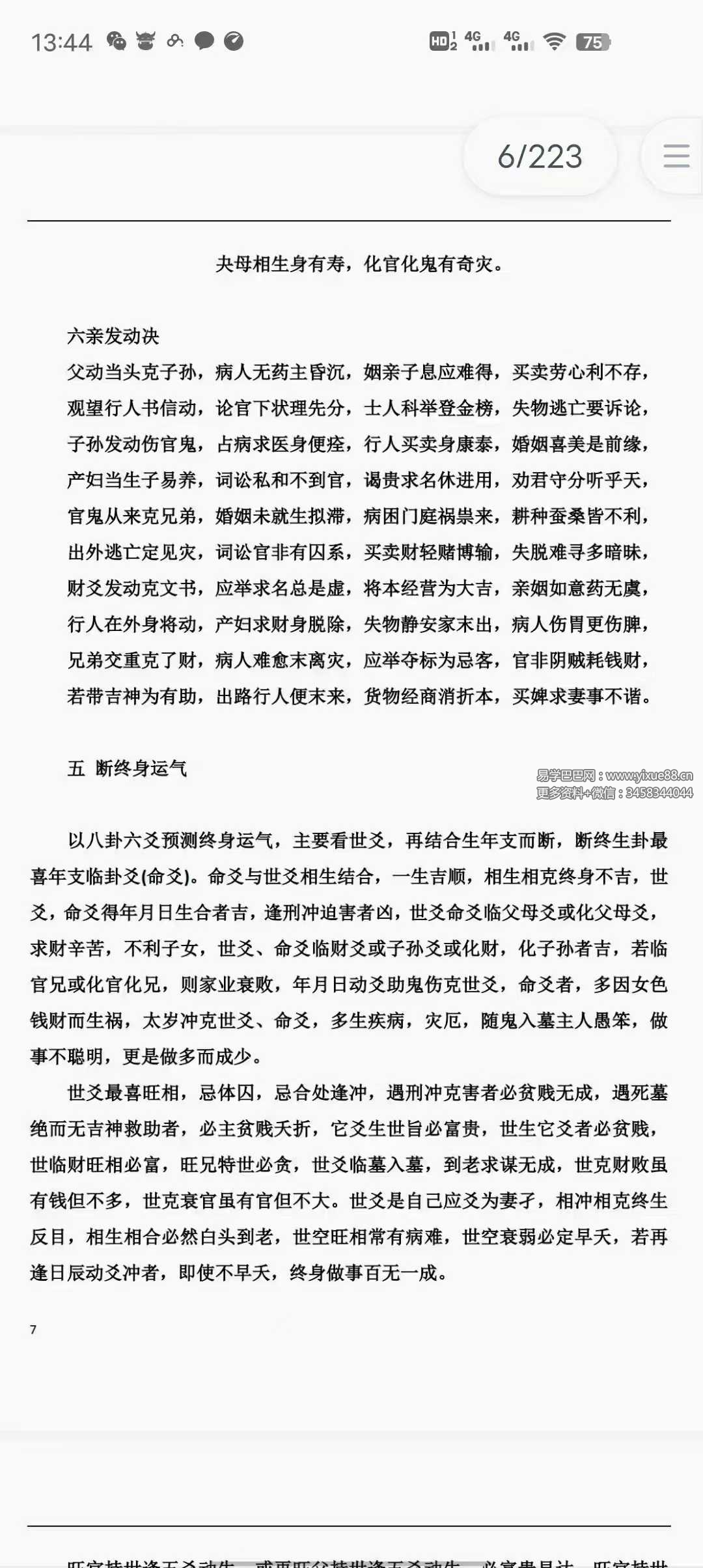 一本六爻专著,尤其后面的解灾内容价值非同一般。确是为李大师不传之秘。我也是刚刚得到该资料,提供复印件给大家学习。这本书可以让你的六爻水平得以大幅度提高。资料珍稀,有缘得之者好好研究吧。