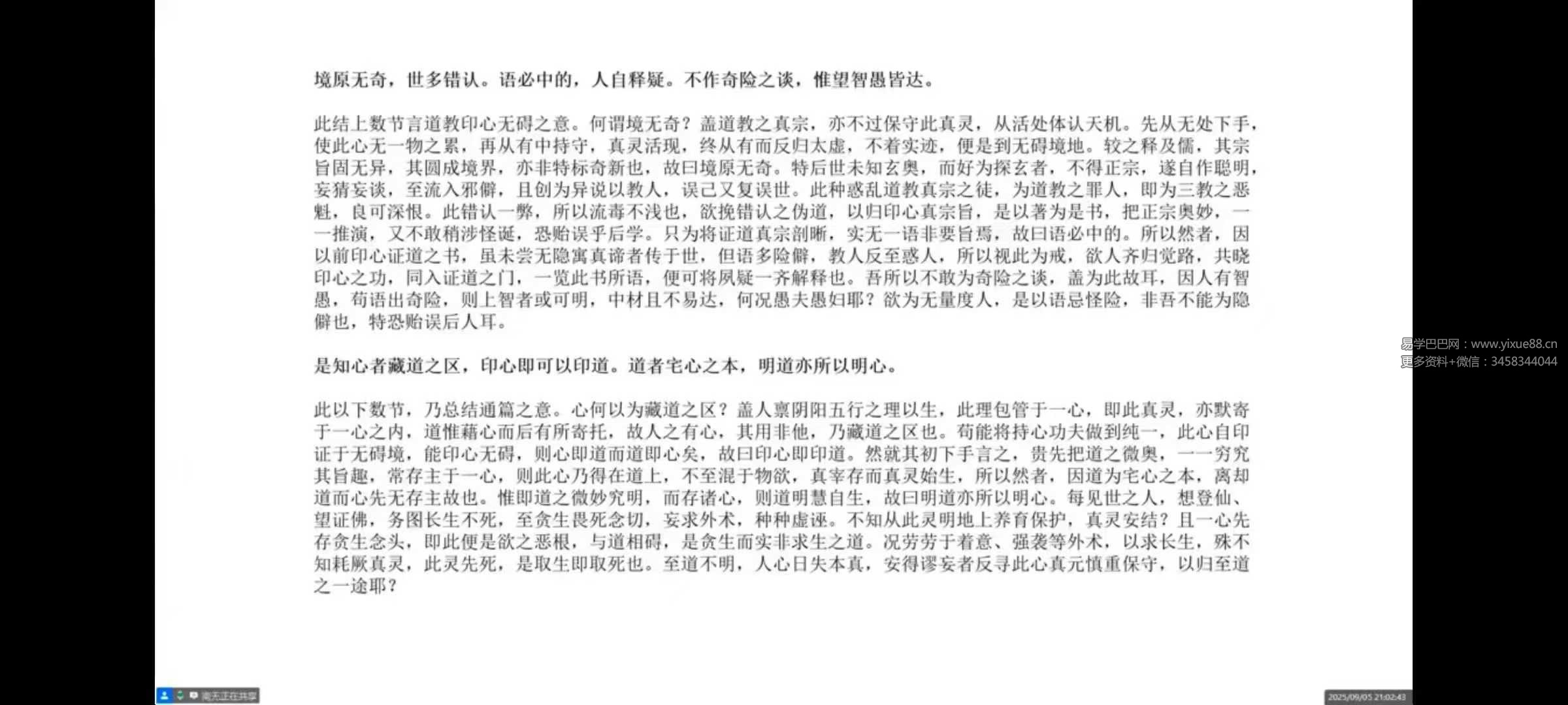 第五节、无碍心印:此篇详细发明人心无碍境界,使得修心者能够得以印证,合三教而一以贯之。1.元神与识神之别2.精气神之妙用3.三教同途,同归此中极乐4.儒学心法无碍之旨5.古佛印心之功6.道教印心真宗