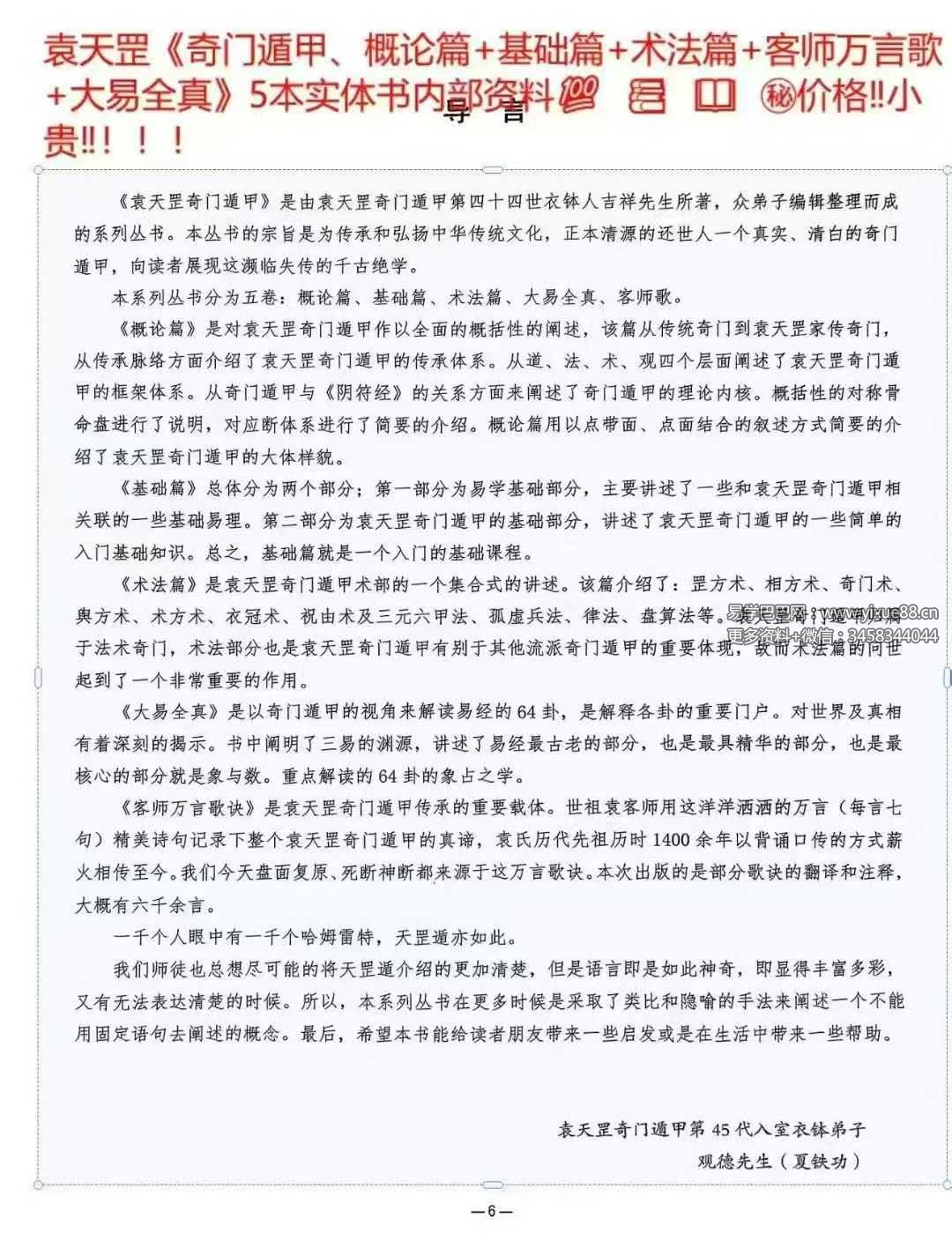 袁天罡《奇门遁甲、概论篇+基础篇+术法篇+客师万言歌+大易全真》5本内部资料电子版优惠分享!!!