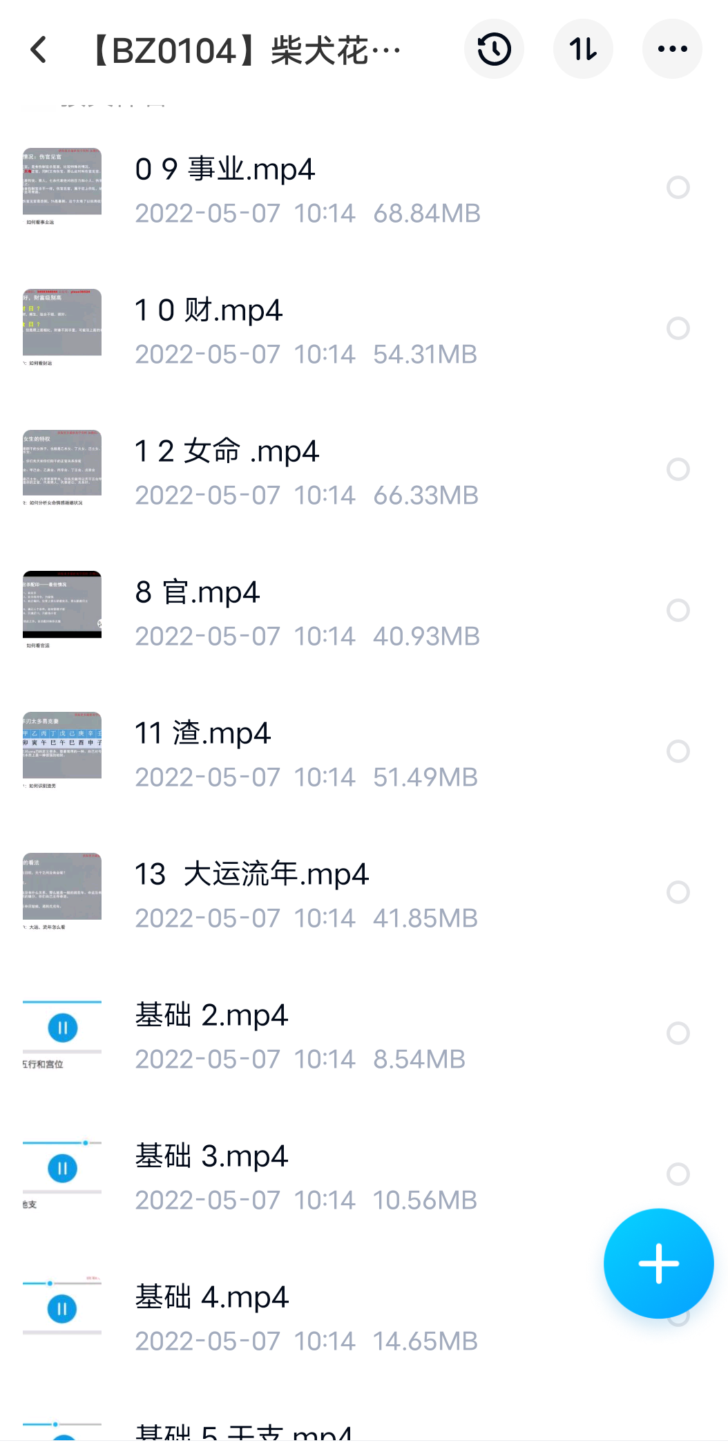 柴犬花生酱八字课程,含八字速成.pdf讲解一些基础知识。然后基础班的视频课程,据说第一集全部是图文。第2-5也是基础,后面讲大运流年之类的。至于中级班的话,据说前面几集都是基础知识和基础班的内容相同,所以只有8-13集,讲格局,从正官格到印格。