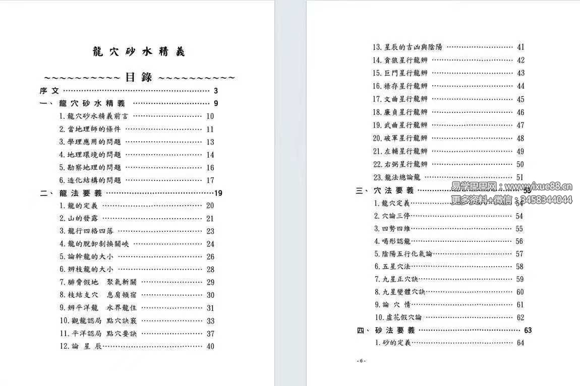 简介:《龙穴砂水精义》丁元黄,堪舆风水相关书籍。堪舆学首重“峦头形势”,其次才是“时运理气”,再其次才是“择日选时”。只是现化人的应用程序,刚好反其道而行。阴阳两宅的吉凶验证,也须就地论理,以推测人事的吉凶。见“机”验断者,乃“占卜、通灵”之术。堪舆典籍经常提到,“峦头无理气不灵。理气无峦头不准。”但是“空间”的环境有“形势”理气;“时间”的气运有“天运”理气;“人事”的运用有“选时”趋避;以上必须了解明辨。古籍的“峦头”形势书籍,皆以大陆“中原”的地理环境作论说。有某些高明的论著又是大而化之,通其“神理”的鸟瞰作品。所以对初学者在应用上彷彿有些困难。察龙点地,首重行龙是否成局并加以判定。若行龙已驻息,则重“点穴、立极”,以致其大用。本书的编排,纯取“龙、穴、砂、水”的学理精华,作重点的提示,以利初学者能轻易入门,了解堪舆玄机。