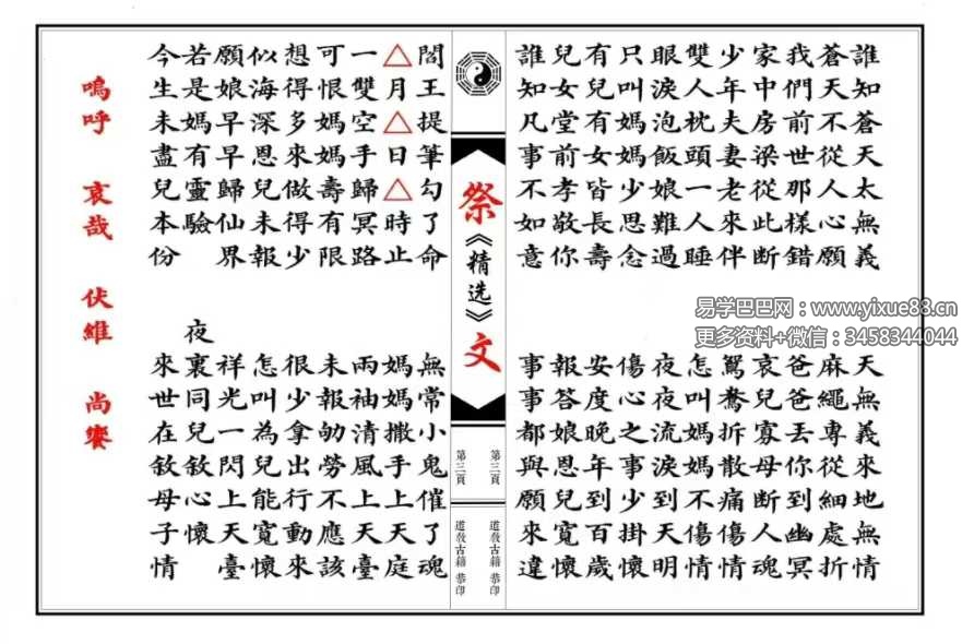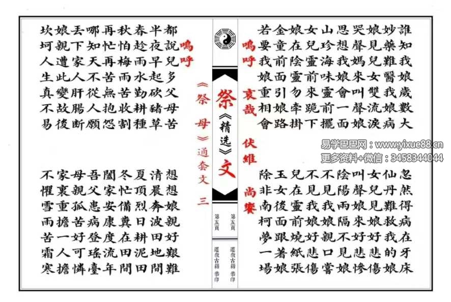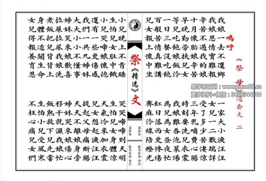 易学巴巴国学学习网-专业易学课程下载网站 » 祭文精选 28篇(含想爹+想娘+奠酒)现代64双页 彩印母版