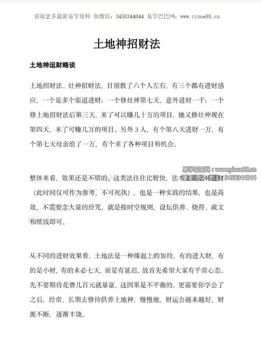 土地神招財法