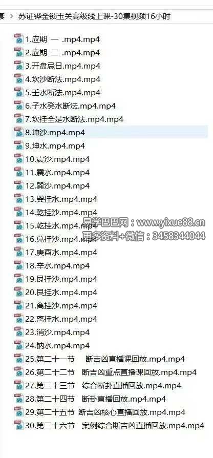 易学巴巴国学学习网-专业易学课程下载网站 » 苏证铧《金锁玉关高级线上课》30集+《提高班线上理论课》65集视频