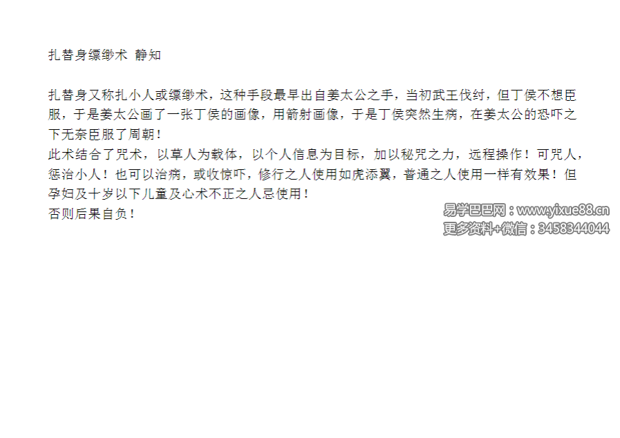 易学巴巴国学学习网-专业易学课程下载网站 » 静知 扎替身缥缈术 视频+文档