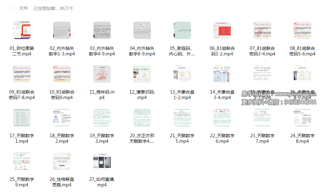 易学巴巴国学学习网-专业易学课程下载网站 » 心禾文化 明玉 生命数字全阶课27集
