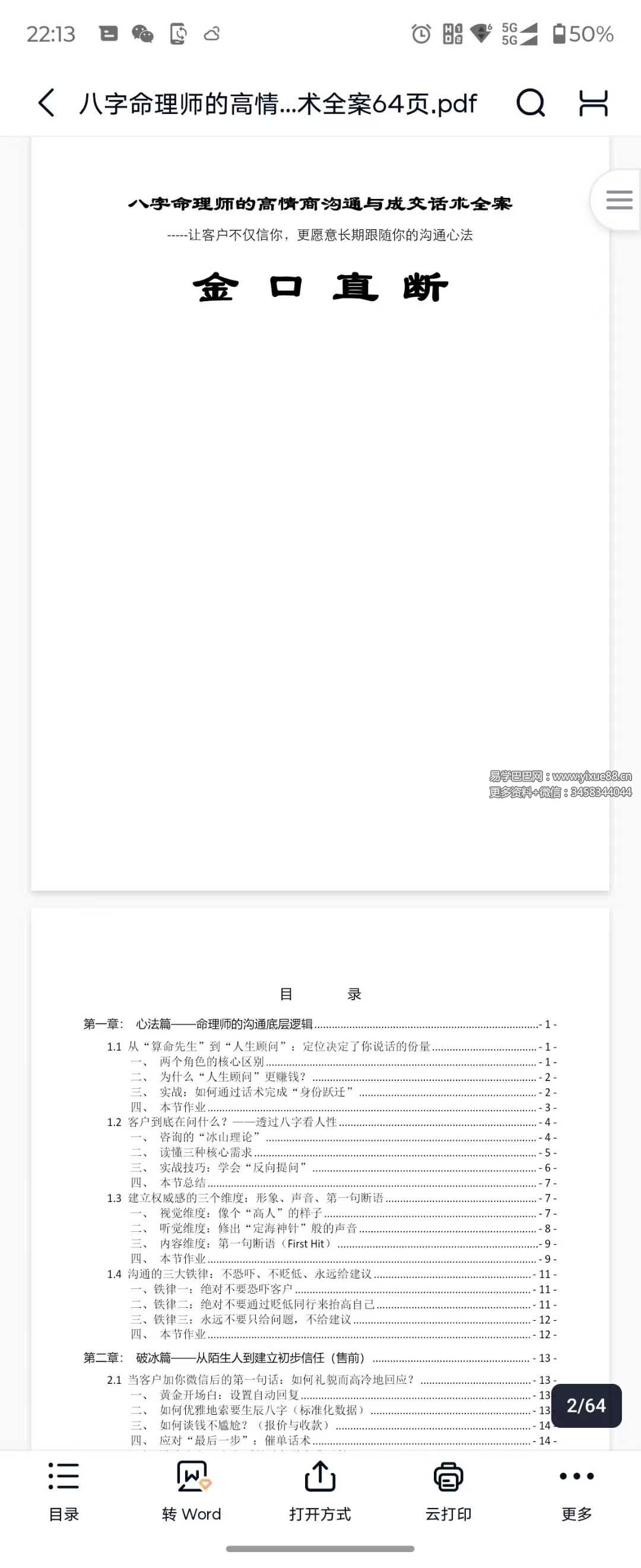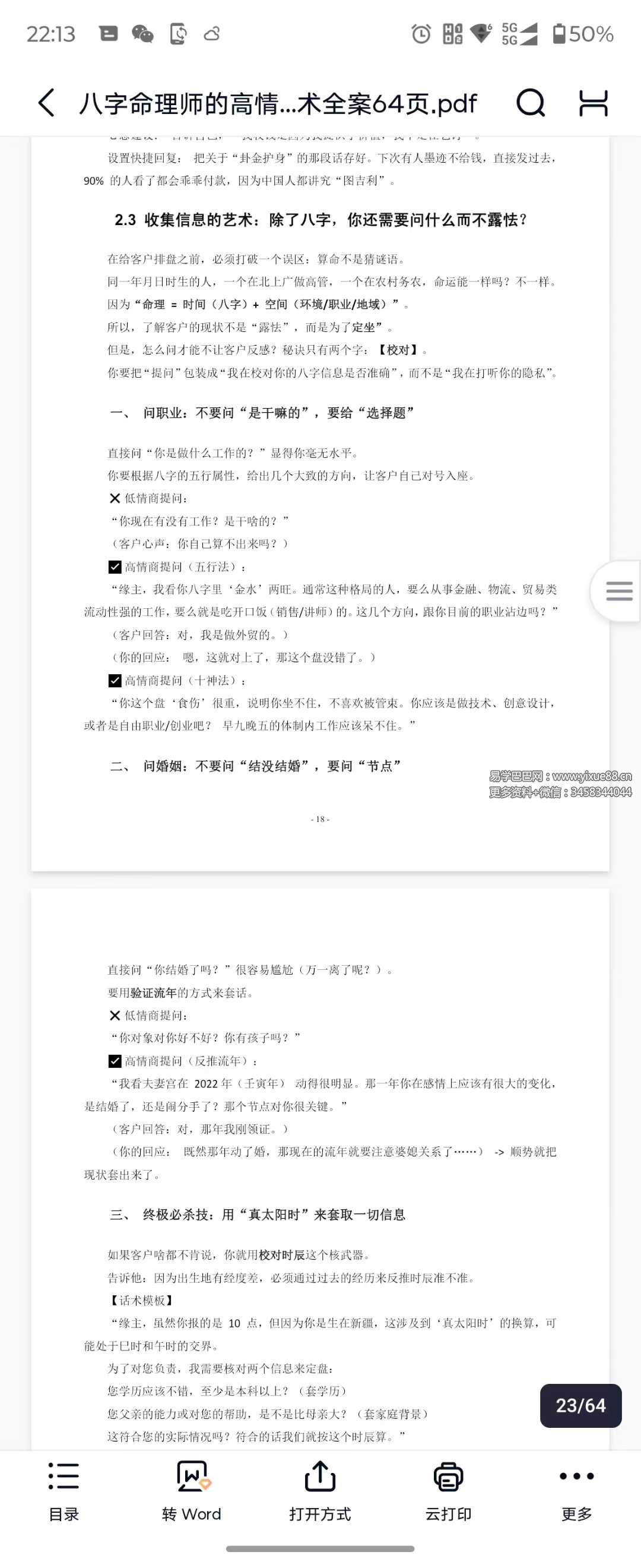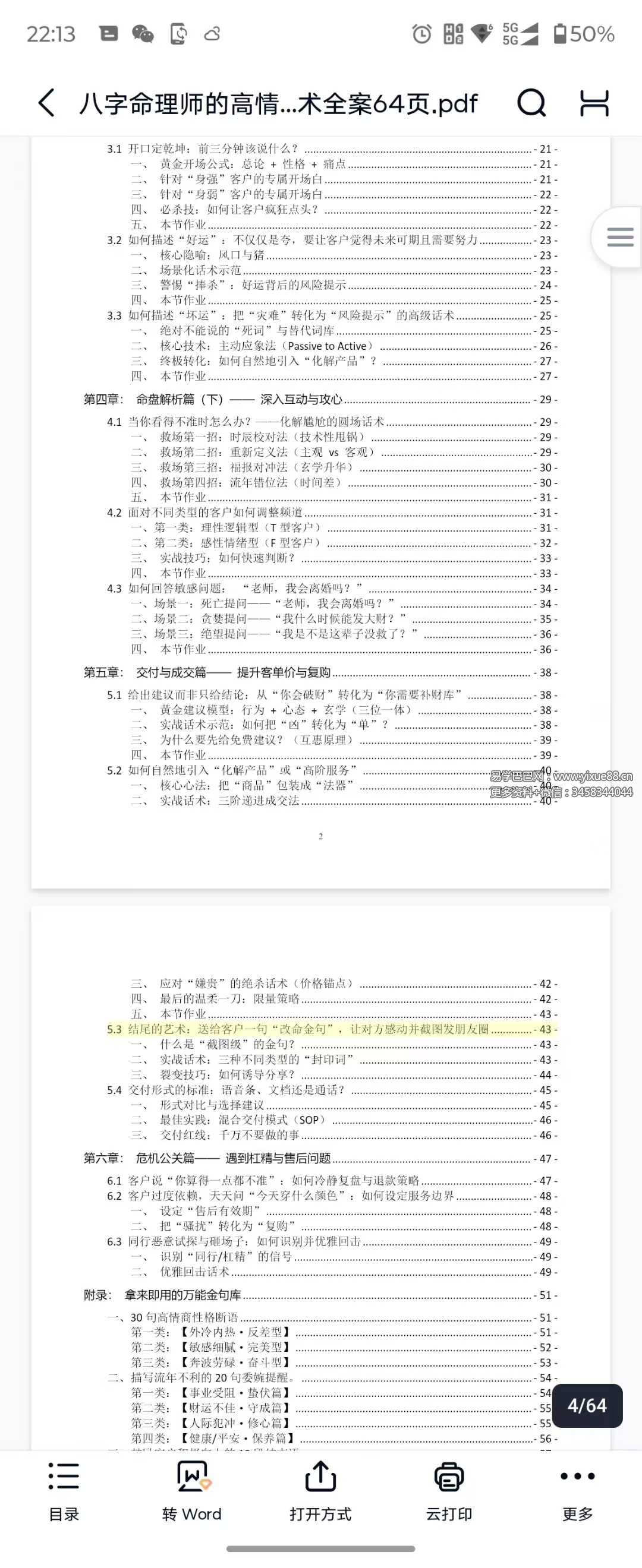 易学巴巴国学学习网-专业易学课程下载网站 » 八字命理师的高情商沟通与成交话术全案64页