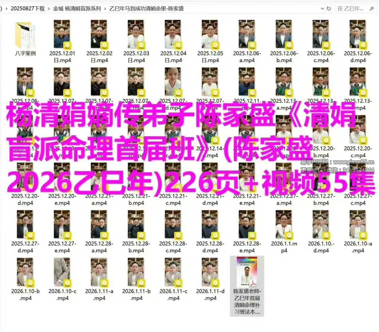 易学巴巴国学学习网-专业易学课程下载网站 » 杨清娟嫡传弟子陈家盛《清娟盲派命理首届班》(陈家盛2026乙巳年)226页+视频55集