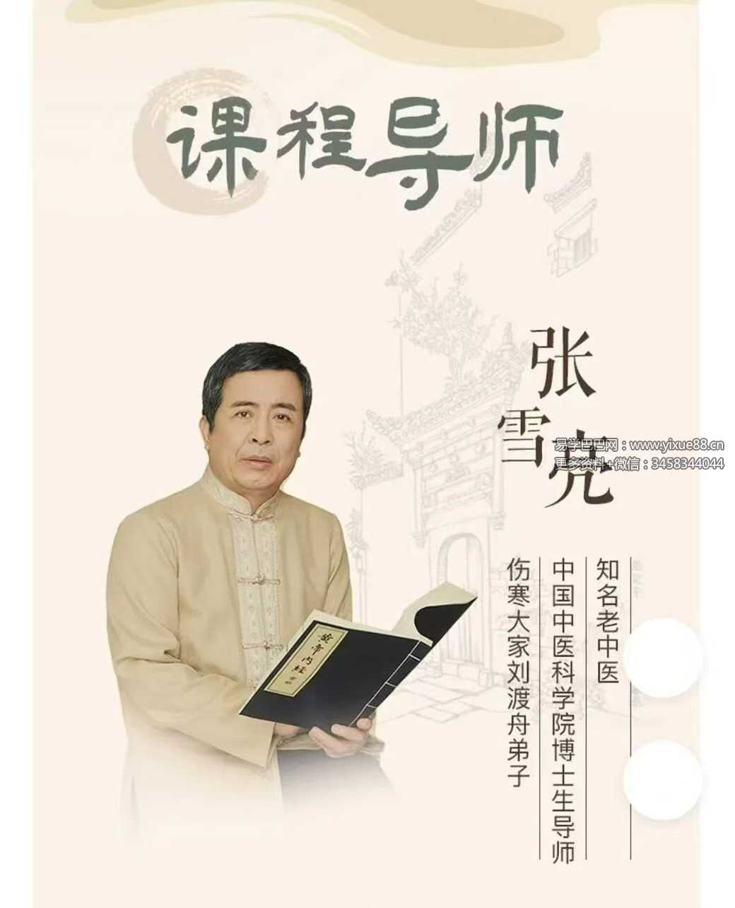 – 张雪亮是北京中医药大学著名伤寒学大家刘渡舟教授、北京四大名医孔伯华之长孙孔令诩教授弟子。
