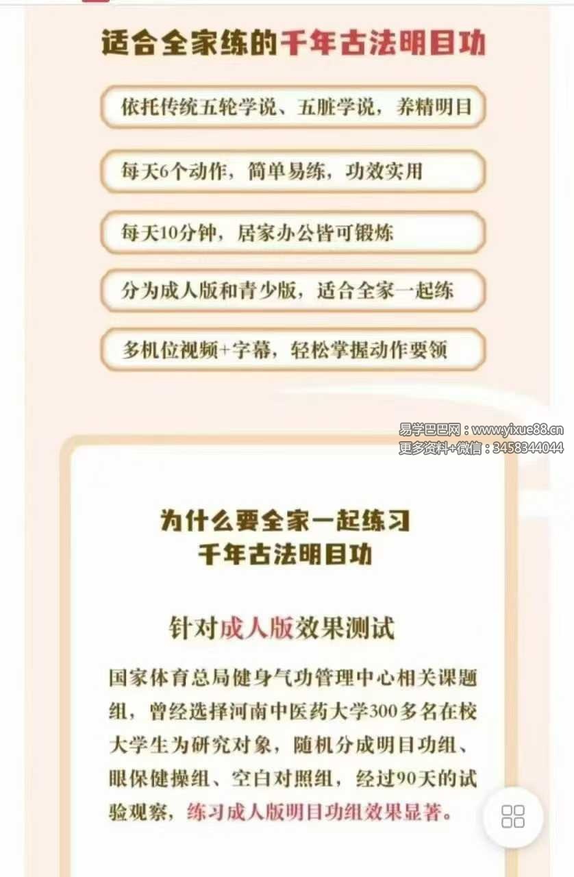 易学巴巴国学学习网-专业易学课程下载网站 » 千年古法明目功 青少版+成人版18集视频课